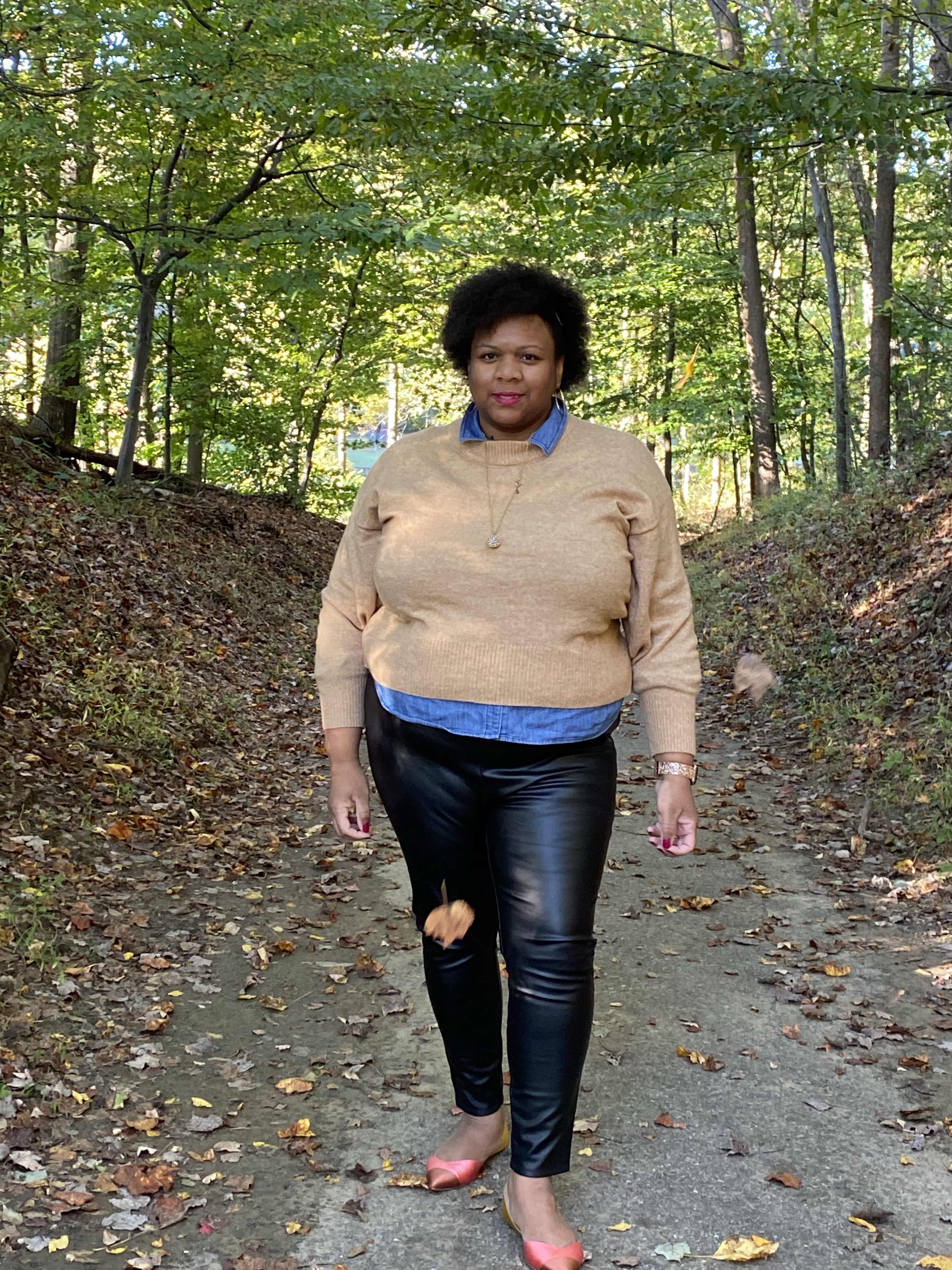 The focus on where to buy fashion trends have greatly shifted from major retailers like J.Crew, Nordstom, Ann Taylor etc. to their online versions along with Amazon and of course Target. Every time I make my weekly (sometimes daily) stop at Target, I simply must visit the clothing section and I’m never disappointed. My latest find at Target is this rich camel colour crew neck sweater which I paired with a chambray button down and faux leather leggings. Camel is a beautiful neutral and at $24.99 (plus tax) it is a must have staple for every wardrobe.